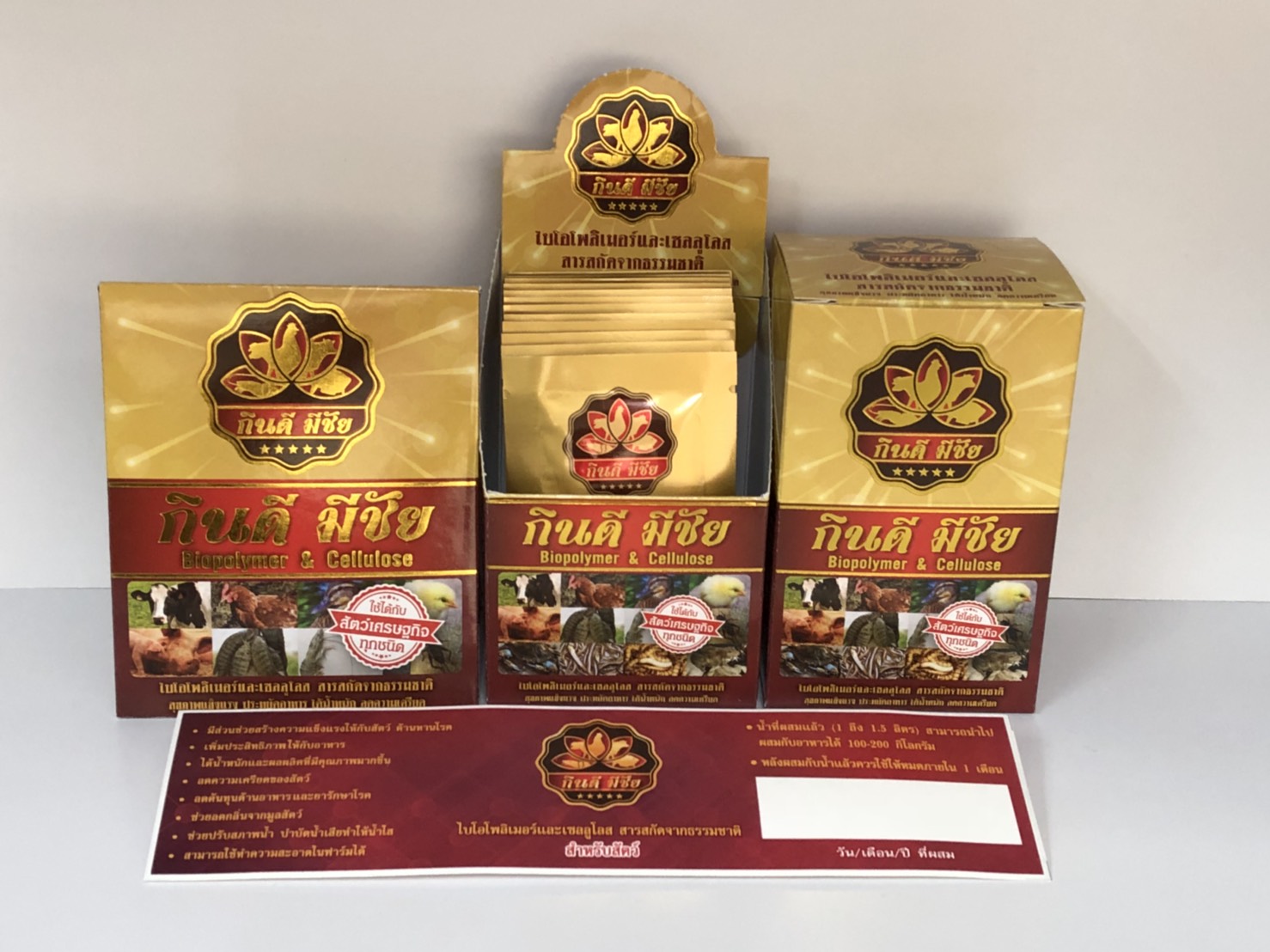 กินดี มีชัย ไบโอโพลิเมอร์ และเซลลูโรส สารเสริมประสิทธิภาพอาหาร 10 ซองแถม 2 ซอง